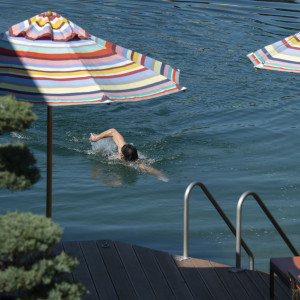 Vor dem Frühstück jedoch eine Runde im rund 20 °C warmen See zu drehen, hat natürlich auch seinen besonderen Reiz. Also hüpfe ich in meine Schwimmklamotten, werfe mir den Bademantel über, laufe kurz über die Liegewiese zum Steg und schwupp.. schon bin ich abgetaucht..