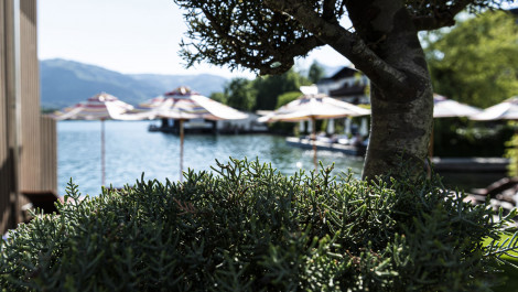 Unser Pool mit Panoramablick auf den Wolfgangsee ist täglich von 7 bis 20 Uhr für Sie geöffnet.
