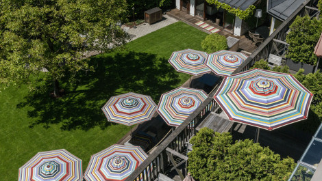 Schon im Gang fallen mir die vielen bunten Bilder auf und auch unser Zimmer ist weit ab von den Mainstream-Hotelzimmern, und besticht mit individuellem Design. Am Balkon mache ich mich erst mal im gemütlichen Sitzmöbel breit und schmökere im Booklet, welches wir an der Rezeption bekommen haben und welches viele Infos übers Haus bereit hält..