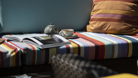 Trotz eines angenehm lauen Sommerabends lassen wir unseren Urlaubstag im gemütlichen Loungebereich nahe der Hotelbar ausklingen. Auch hier bin ich wieder sehr angetan von dem gelungenen Stilmix aus alt und neu und ich bin der Überzeugung, dass die ein oder andere Idee bestimmt mit nach Hause in die eigenen vier Wände reist.