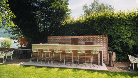 Am Abend genießen wir auf der Sonnenterrasse eine herrliche Komposition aus heimischen Gaumenfreuden.