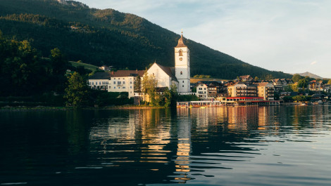 Die Anreise entlang des blaugrün schimmernden Wolfgangsees