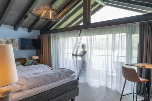 Als mein Blick so über die großzügige Liegewiese schweift und ich in Gedanken schon in den See hüpfe, sehe ich es.. unser Bootshaus samt der Boat-Shed-Suite im Oberdeck! Ein Traum.. wenn es nach mit geht, könnte ich den ganzen Sommer hier verbringen!