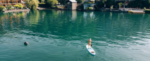 Wer es lieber ein wenig sportlicher angehen will, der schwingt sich auf eines unserer vier SUP's.