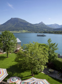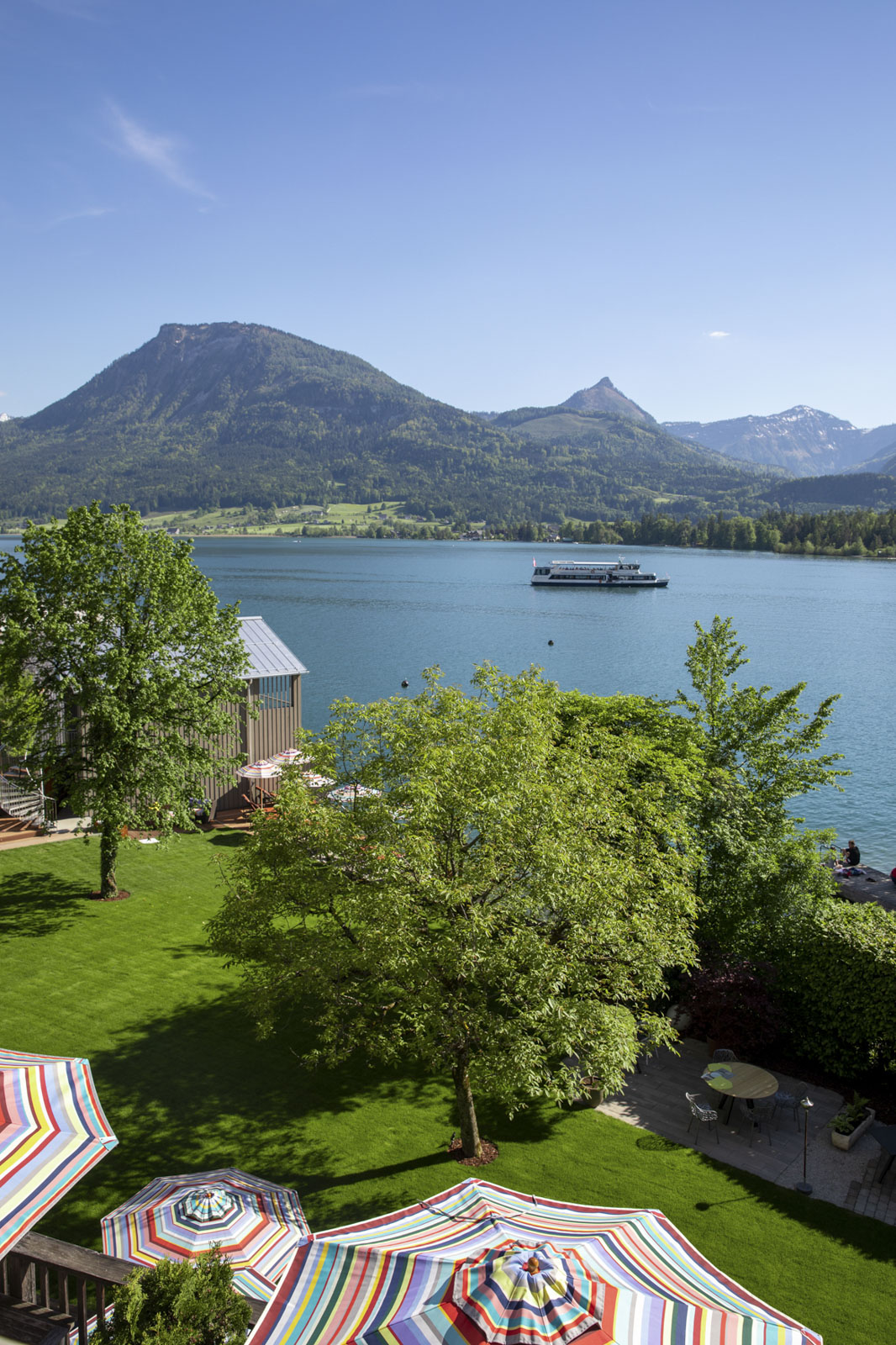 Oops.. got caught up in conversation, didn't pay attention to the satnav and ended up on a detour through the picturesque village of St. Wolfgang. My partner in the passenger seat can't get enough of it.. a stylish boutique selling traditional Austrian garments on the one side, an inviting café with a patio on the other. But we don't have enough time for that now, because I can't wait to see our Hotel Cortisen.