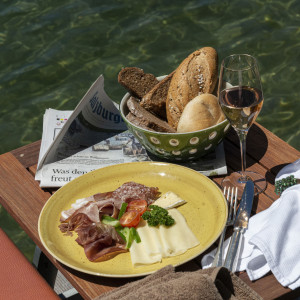 We have already decided to start off tomorrow, the first day of our holiday, in a very special way. We have requested a tasty breakfast basket to be brought directly to our suite. And the kitchenette in our suite means we are already fully equipped and can enjoy an undisturbed breakfast for just the two of us directly above the waves of Lake Wolfgang.