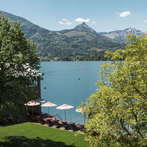 Unser Pool mit Panoramablick auf den Wolfgangsee ist täglich von 7 bis 20 Uhr für Sie geöffnet.