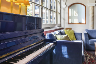 Trotz eines angenehm lauen Sommerabends lassen wir unseren Urlaubstag im gemütlichen Loungebereich nahe der Hotelbar ausklingen. Auch hier bin ich wieder sehr angetan von dem gelungenen Stilmix aus alt und neu und ich bin der Überzeugung, dass die ein oder andere Idee bestimmt mit nach Hause in die eigenen vier Wände reist.