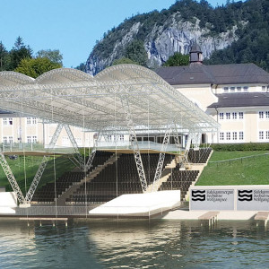 Die Salzkammergut-Seebühne wird in Ried am Wolfgangsee errichtet und bietet Platz für 800 Zuschauer:innen. Sowohl die Bühne als auch der gesamte Zuschauerraum sind überdacht und dadurch wetterunabhängig bespielbar. Gerade im Salzkammergut ein unschätzbarer Vorteil für einen durchgängigen Kultur- und Veranstaltungsbetrieb.