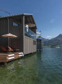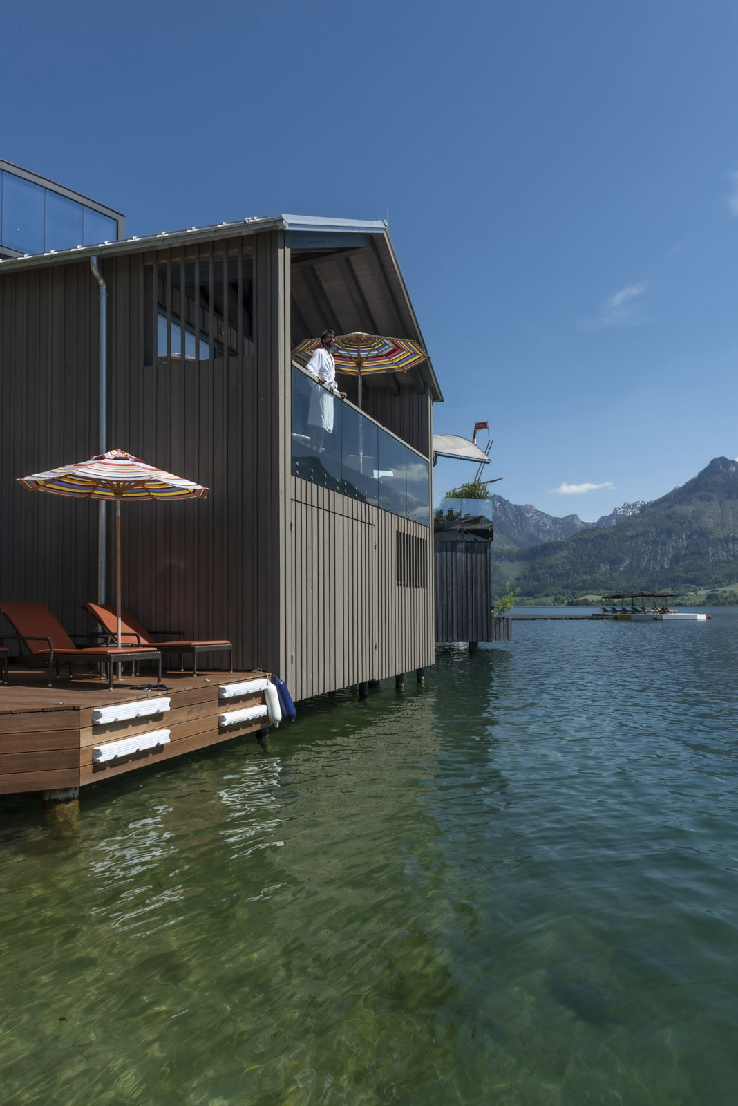 Als mein Blick so über die großzügige Liegewiese schweift und ich in Gedanken schon in den See hüpfe, sehe ich es.. unser Bootshaus samt der Boat-Shed-Suite im Oberdeck! Ein Traum.. wenn es nach mit geht, könnte ich den ganzen Sommer hier verbringen!